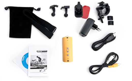 W komplecie z kamerą znajdziemy jeden uchwyt oraz elastyczny pasek - wyposażona w wygodny i pewny system mocować, dzięki któremu w każdej chwili kamerę można odpiąć i z łatwością z powrotem umieścić na uchwycie. Materiały wideo czy też zdjęcia są nagrywane na karcie pamięci microSD, której maksymalna pojemność może wynosić nawet 32 GB (starcza na wiele godzin nagrań).